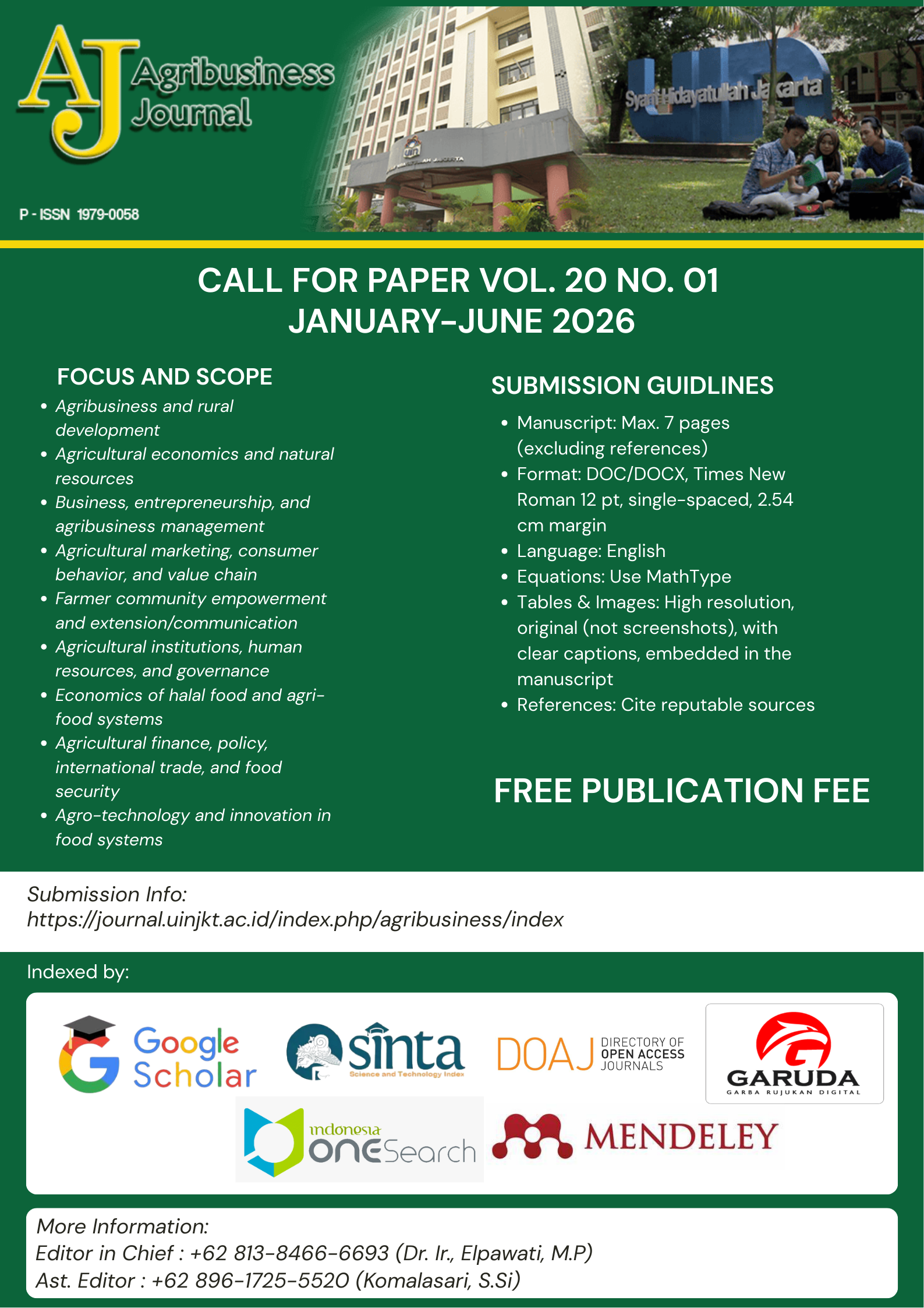 CALL FOR PAPERS AGRIBUSINESS JOURNAL VOL.20 NO.01 JANUARY - JUNE 2026