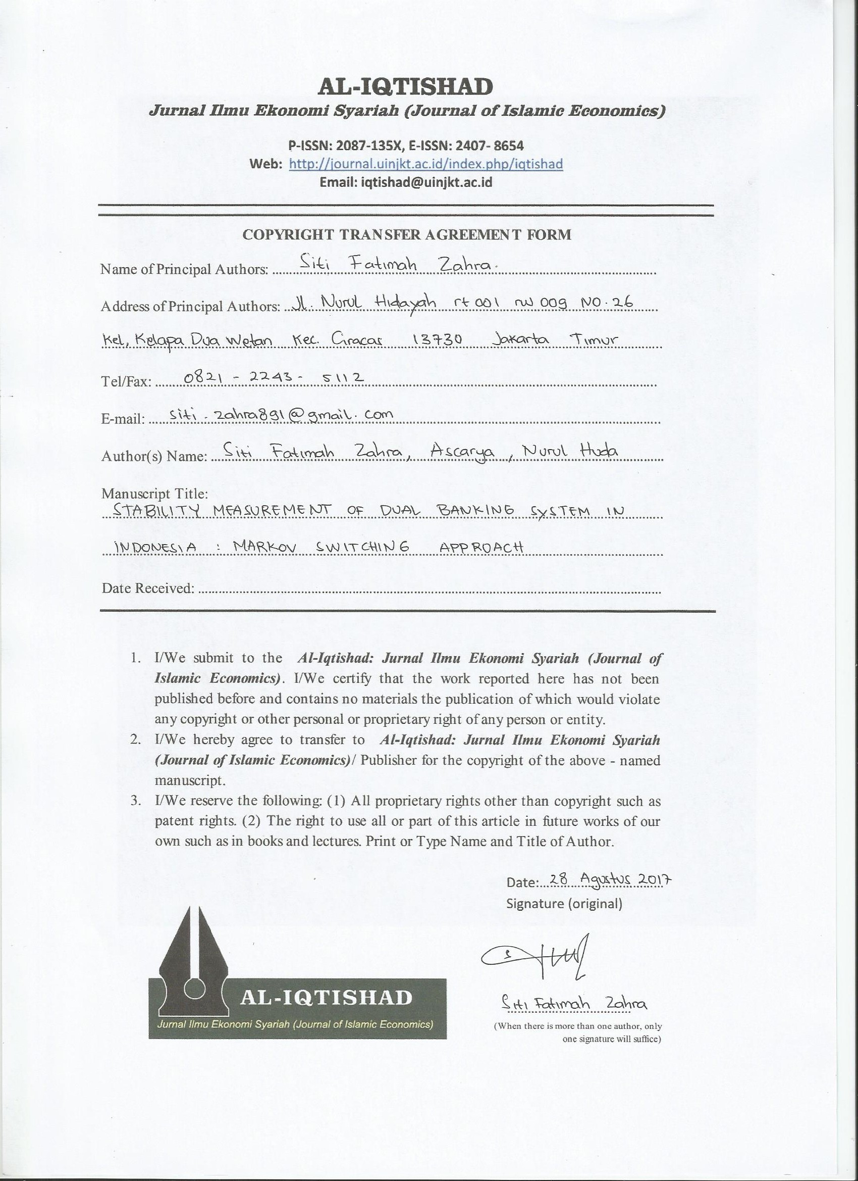Kusuma, D.B. & J. Duasa. (2017). Building an Early Warning towards The Resilience of Islamic Banking in Indonesia. Al-Iqtishad: Jurnal Ilmu Ekonomi Syariah (Journal of Islamic Economics). 9 (1): 13-32.