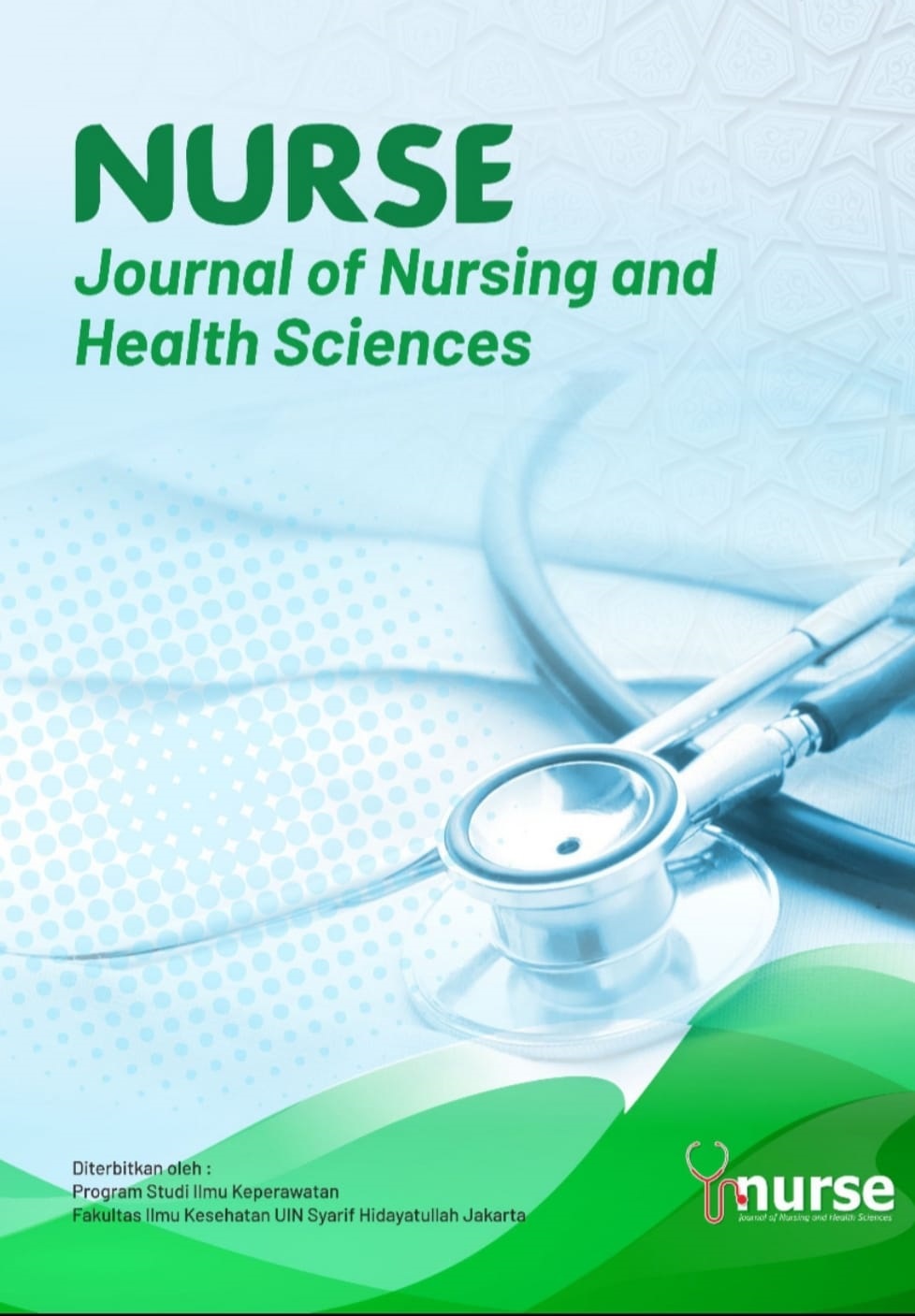 NURSE: Journal Nursing and Health Science, a double-blind peer-reviewed journal, is a platform for researchers, scholars, and practitioners to disseminate original research, systematic review, and case study. NURSE: Journal Nursing and Health Science is published biannually by the Department of Nursing, Faculty of Health Sciences, UIN Syarif Hidayatullah. The primary focus and scopes of the journal include adult nursing, emergency nursing, gerontological nursing, community nursing, mental health nursing, pediatric nursing, maternity nursing, nursing leadership and management, complementary and alternative medicine (CAM) in nursing, and education in nursing. The Journal also covers any topics that are relevant to health issues from an Islamic perspective.
